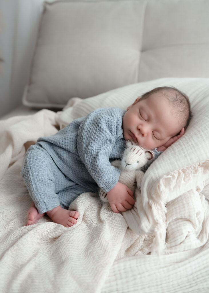 Viele Eltern fragen mich genau das – und ehrlich gesagt: es kommt ganz auf euch an. Die meisten machen das Shooting in den ersten 10 – 14 Tagen nach der Geburt, weil die Babys dann noch viel schlafen und sich entspannter fotografieren lassen.